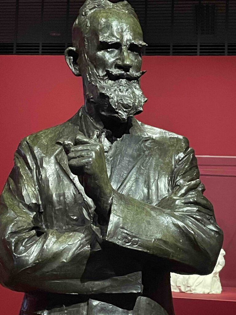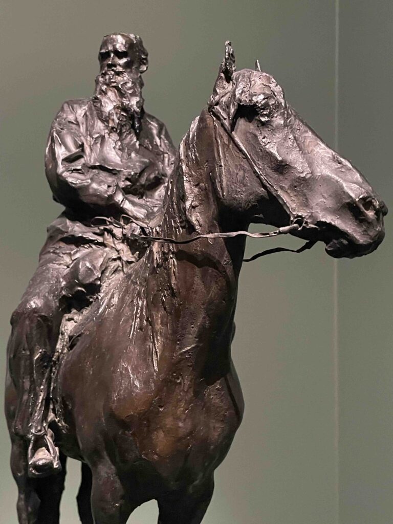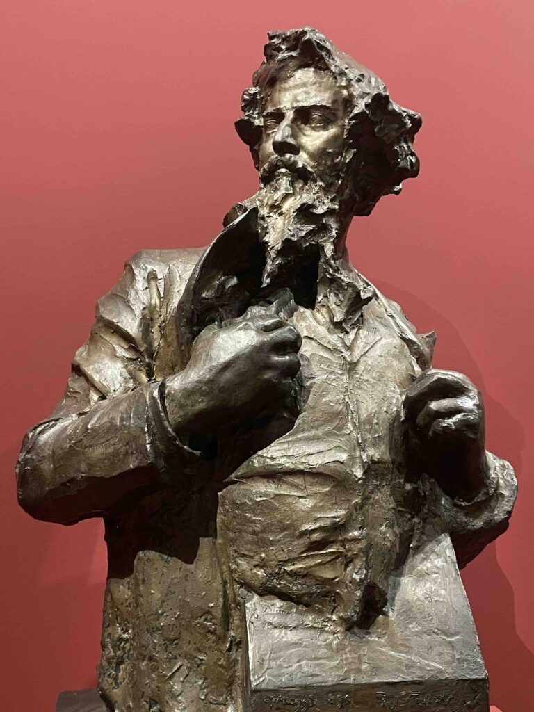 Le buste de Tolstoï, en chemise russe, dans l’atelier de Troubetzkoy reconstitué dans le cadre de l’exposition du Musée d’Orsay.