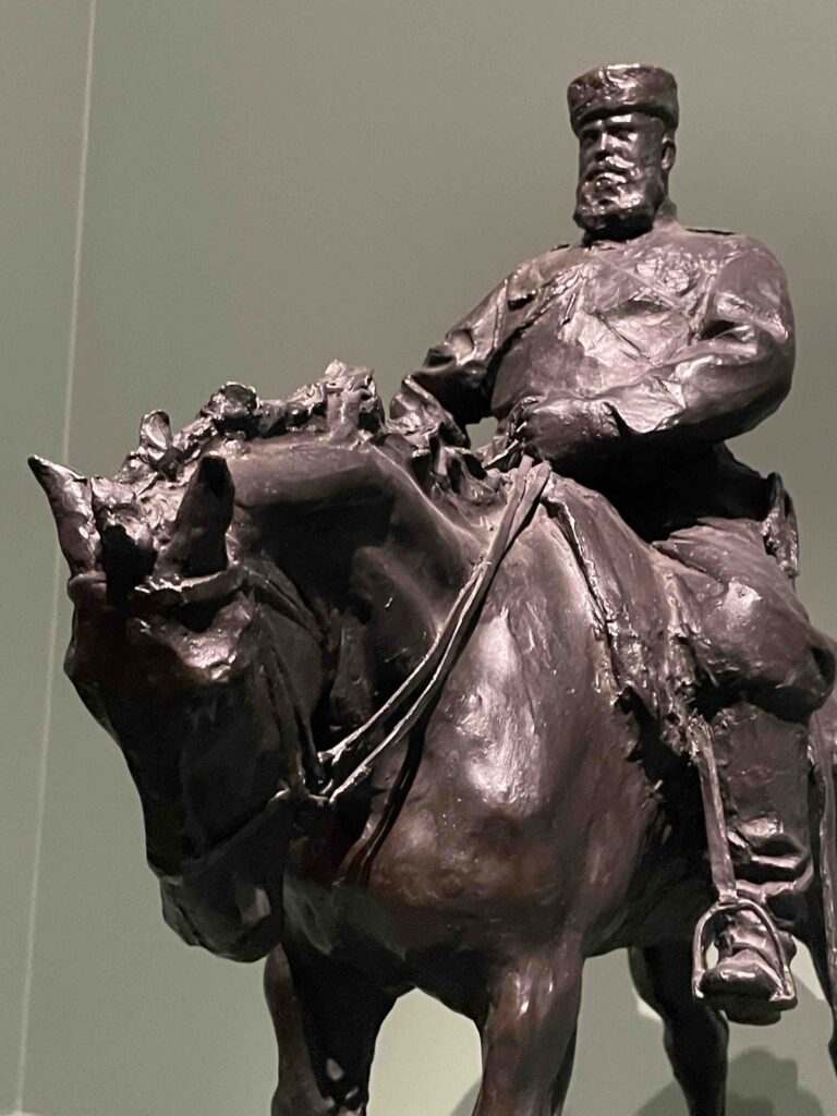 Toujours, Troubetzkoy a affirmé son italianité. Il est né et mort en Italie. A un critique russe Youri Beliaev qui s’adresse à lui en l’appelant « Prince », il répond vertement « Paolo ». Pourtant, quand il gagne Moscou, ses liens nobiliaires sont bien reconnus et le prince Lvov l’invite à devenir professeur à l’École de peinture, de sculpture et d’architecture. Troubetzkoy est alors espéré comme le rénovateur des formes. C’est ainsi qu’il bénéficie d’un grand atelier à Saint-Pétersbourg et obtient en 1900 la commande d’un monument à Alexandre III. La statue équestre est érigée face à la gare en mémoire du tsar créateur du Transsibérien. Le souverain en simple uniforme de cavalerie est campé sur un cheval solide et trapu. Inaugurée en 1909, la sculpture suscite les quolibets, certains qualifiant le cheval d’ »hippopotame ».