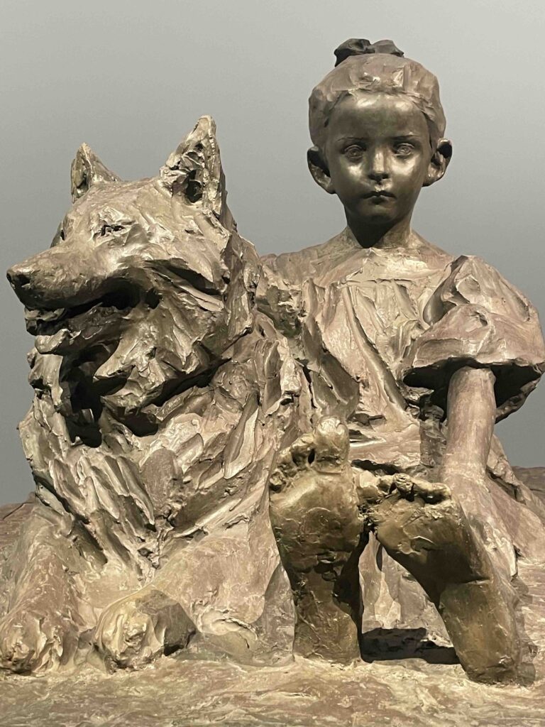 C’était le temps où tous les hommes, et un certain nombre de femmes, apparaissaient comme des héros. Et Paul Troubetzkoy a su les modeler afin que toute leur fougue, leur tempérament, leur caractère jaillissent du plâtre ou du métal. Mais, dans le même temps qu’il présentait le meilleur de ces personnalités, ce peintre-sculpteur adulé dans le monde entier, mettait sur le même piédestal, les compagnons non-humains, et portait au regard du monde occidental la prise de conscience de la cause animale en pionnier. Faut-il associer cette attention portée à ceux qui souffrent à la mise à l’écart dont le petit Paul a pu ressentir pendant premières années de sa vie ? Il était le cadet d’une fratrie illégitime issue de la liaison entre son père, Pyotr Petrovitch Trouubetzkoy, aristocrate russe né en 1822 à Tutchine, ville d’Ukraine, et sa mère Ada Winans, musicienne. Avec ses deux frères, il ne fut reconnu par leur père qu’après le divorce de ce dernier. L’éducation de son précepteur, le peintre Daniele Ranzoni, qui fut le premier à tirer son portrait avec ses frères, en compagnie de leur chien protecteur et adoré, n’y fut sans doute pas non plus étrangère.