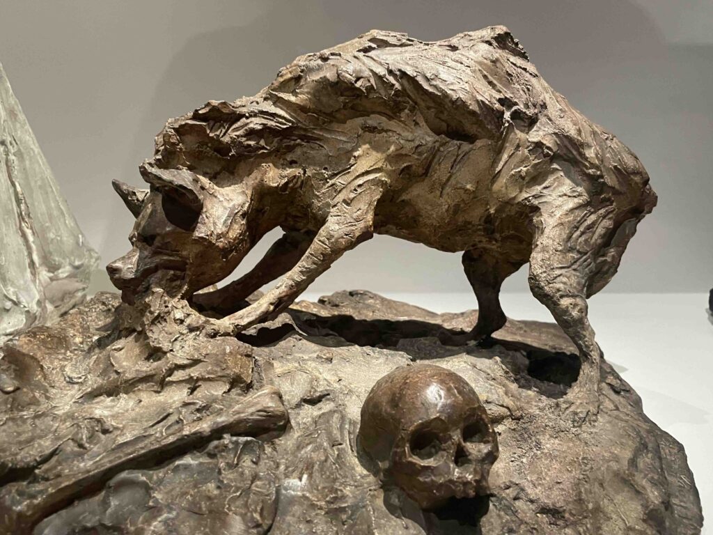Depuis sa plus tendre enfance, les amis fidèles de l’homme ont eu toute leur place dans ses oeuvres, souvent fondus dans la masse aux côtés des personnalités, comme le reflet de la relation unique qui peut les lier. Il s’est engagé ardemment à travers des articles et des conférences et il est l’auteur de deux sculptures militantes aux titres provocateurs intitulées Dévoreurs de cadavre, contre la loi de la nature (1904) et Comment pouvez-vous me manger ? (1912) que l’on peut découvrir dans les dernières salles de l’exposition. L’agneau s’appelait Humpy. Elin l’avait recueilli alors qu’ils vivaient aux Etats-Unis lors d’une promenade dans la campagne. Anne-Lise Desmas, conservateur de la sculpture et des arts décoratifs au J. Paul Getty Museum à Los Angeles, raconte Troubetkoy modela en quelques jours le petit Humpy dans le parc jouxtant le musée de Toledo (Ohio) où il venait d’inaugurer son exposition le 10 avril 1912. « Refusant généralement de donner des titres à ses oeuvres, Troubetzkoy brilla d’invention en donnant la parole à l’animal, lequel interpelle ainsi le spectateur après l’avoir attendri par son innocence si touchante », ajoute Anne-Lise Desmas.